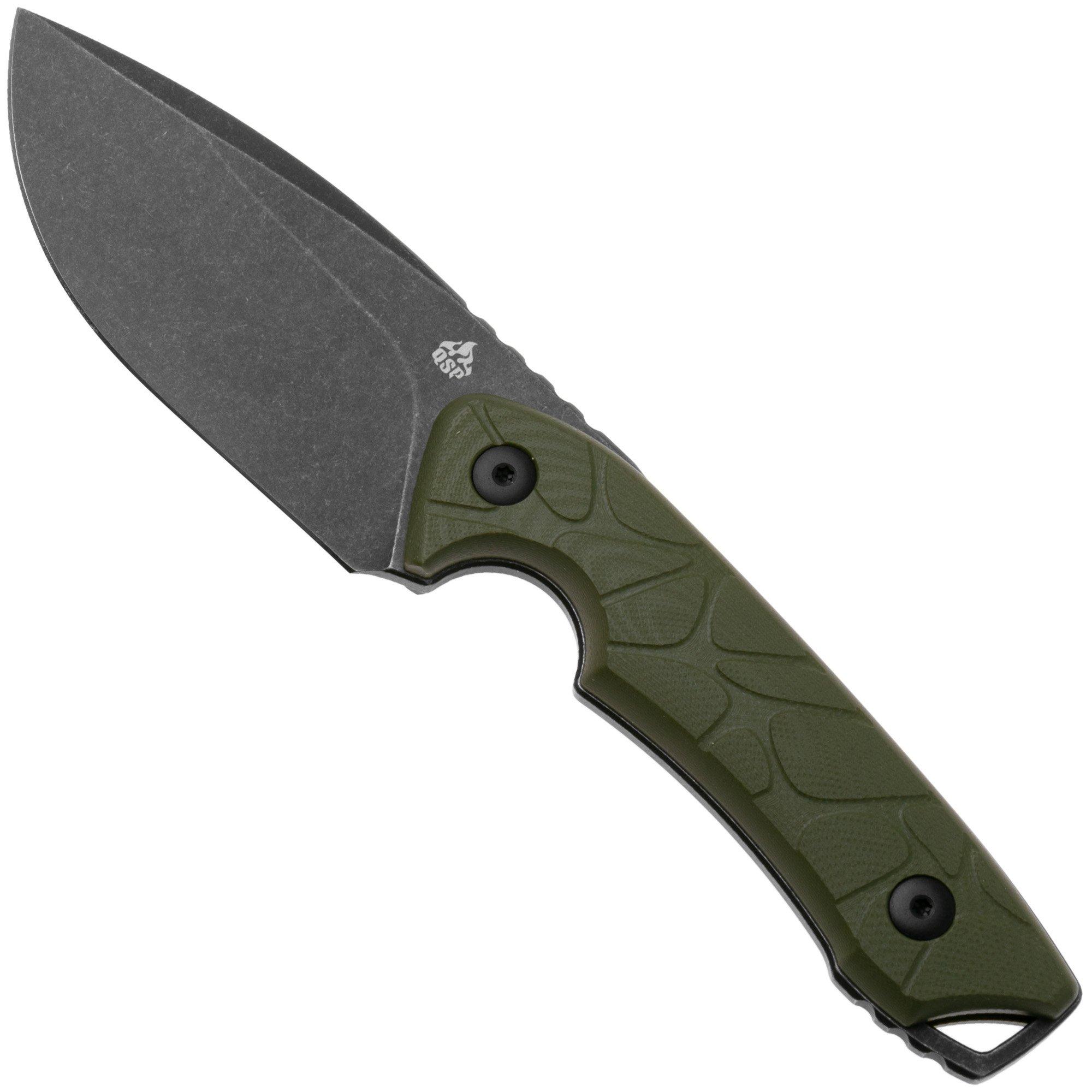 QSP Knife Tiny TOT QS169-B2 Blackwashed 10Cr15MoV OD Green G10, vaststaand mes